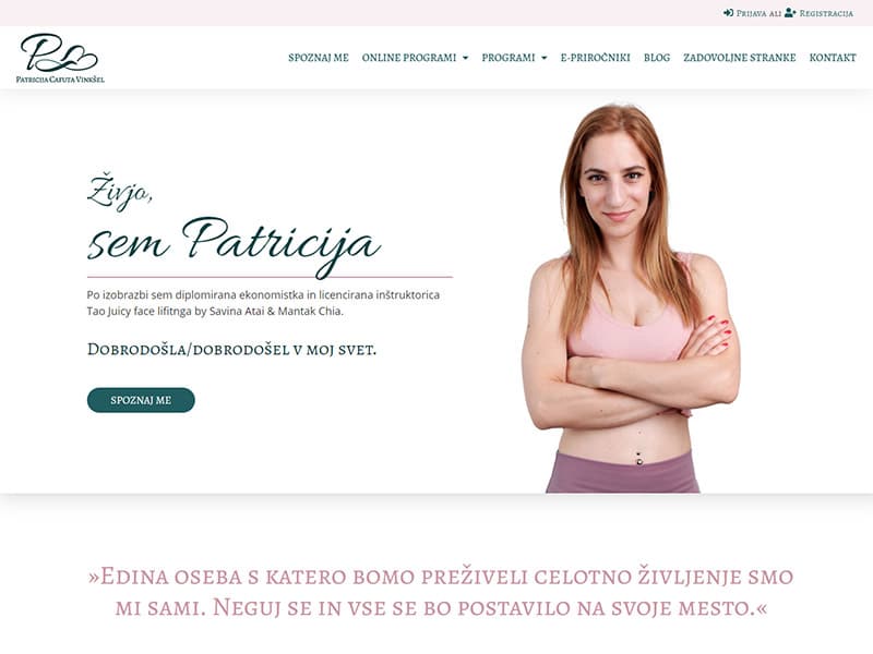 Spletna stran Patricije Cafute Vinkšel, ki je licencirana inštruktorica Tao Juicy face lifitnga by Savina Atai & Mantak Chia. Spletna stran vsebuje sistem za prodajo in izvajanje spletnih tečajev LearnDash.